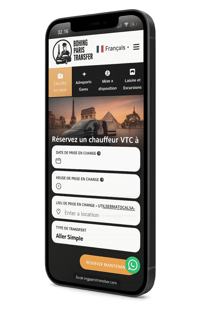 Réservez votre transfert aéroport avec Booking Paris Transfer, le service de chauffeur privé fiable et confortable entre CDG, Orly, Beauvais, Le Bourget et Paris Gares. Profitez d’un prix fixe, sans frais cachés, et d’un trajet serein vers votre destination.